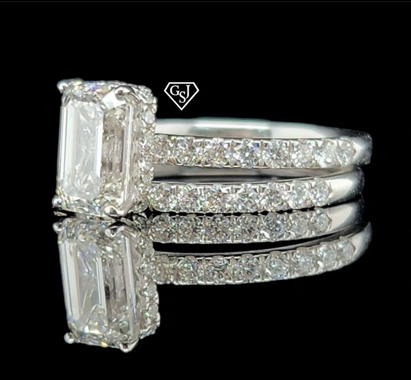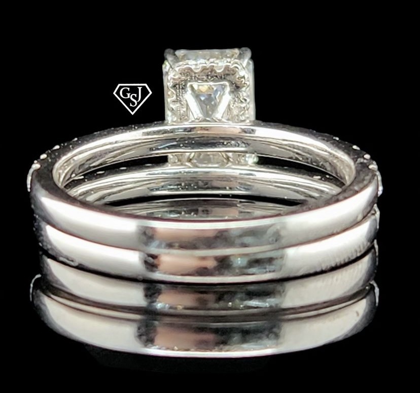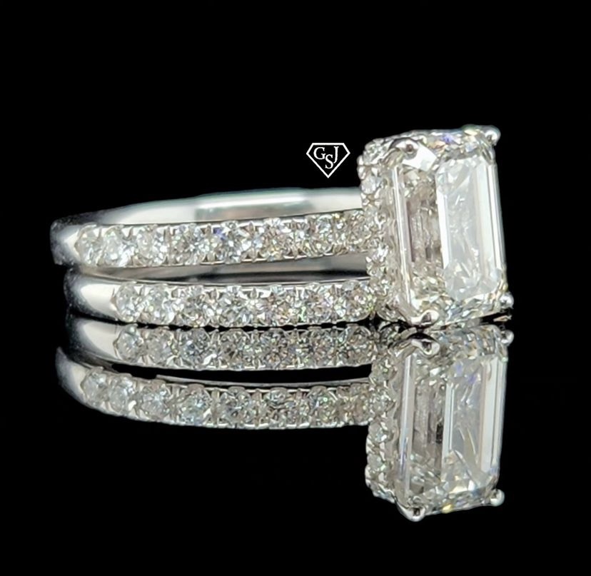 This 14K white gold wedding set features a 1.72CT Center Diamond, and holds a total created diamond weight of 2.53CTs. On sale now at Gold Star Jewellers!