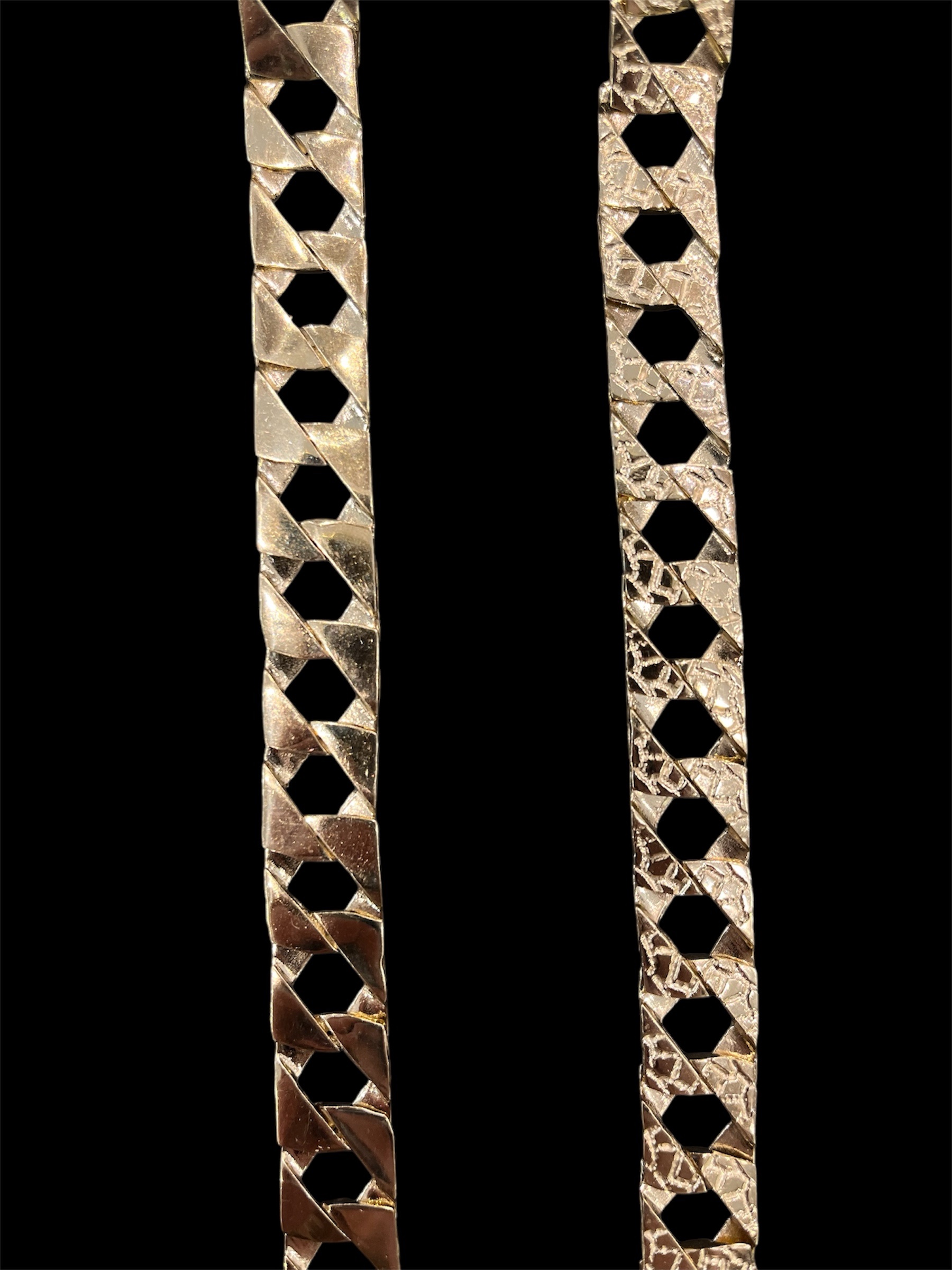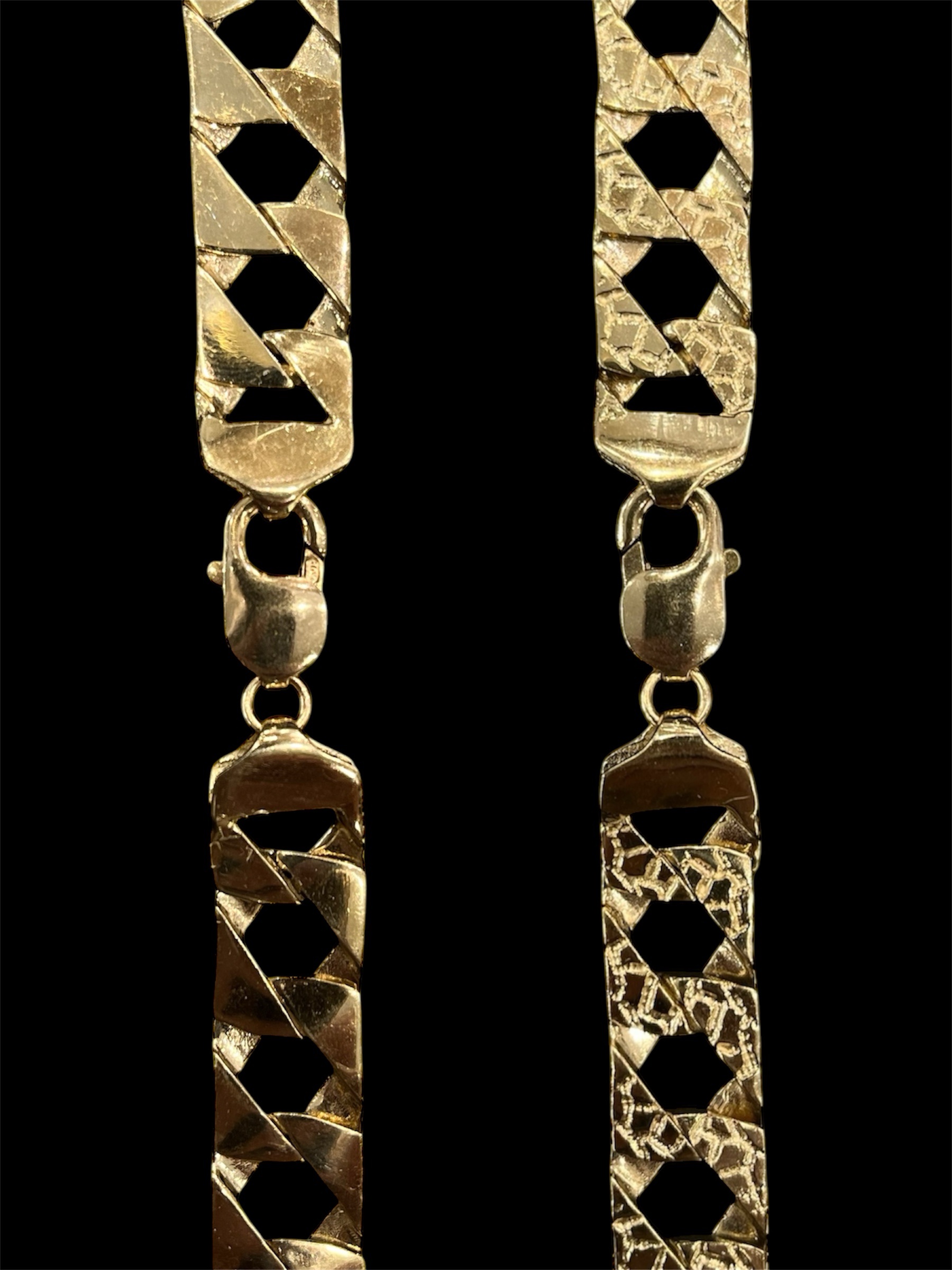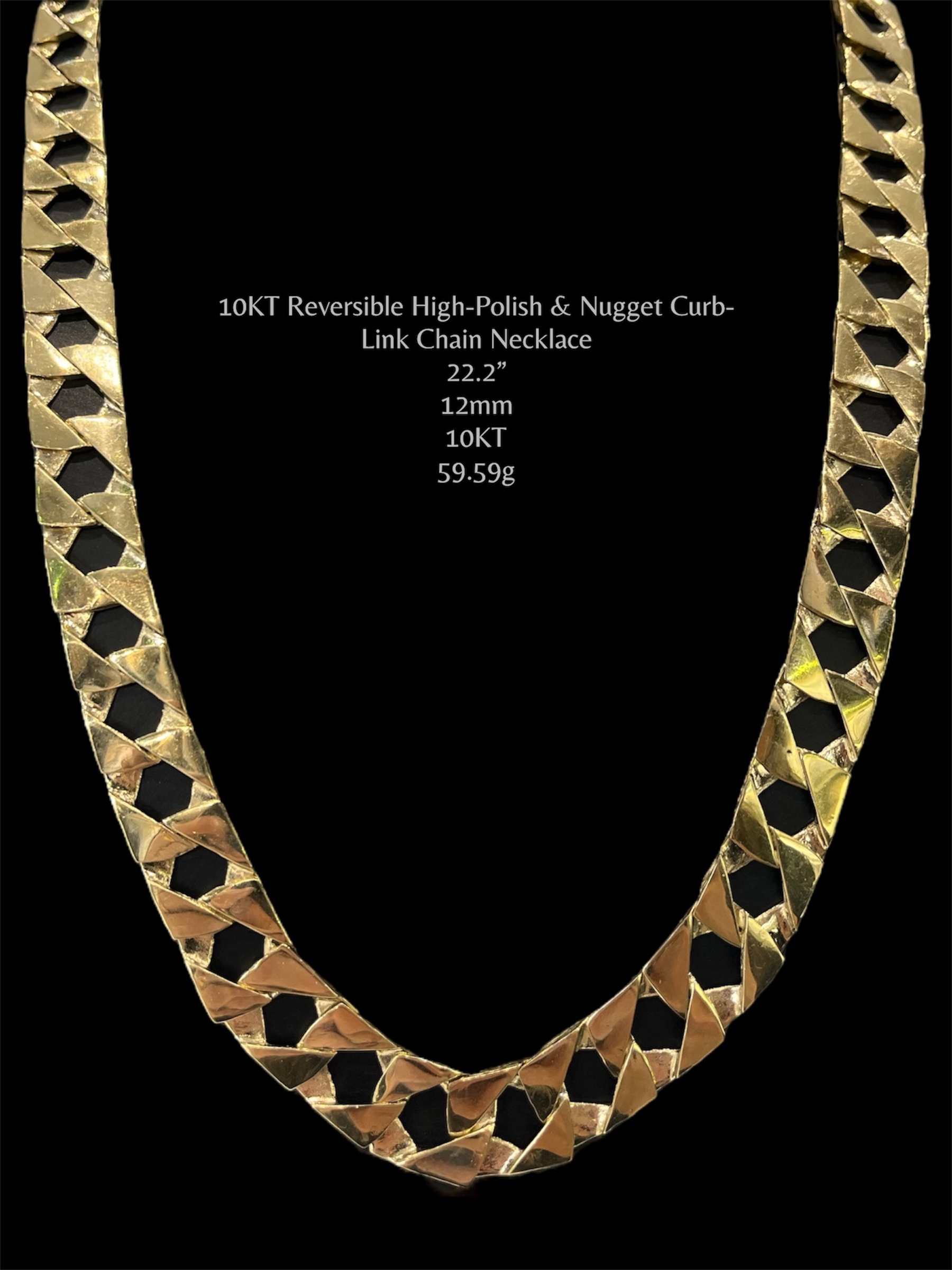 10KT Reversible High-Polish & Nugget Curb- Link Chain Necklace