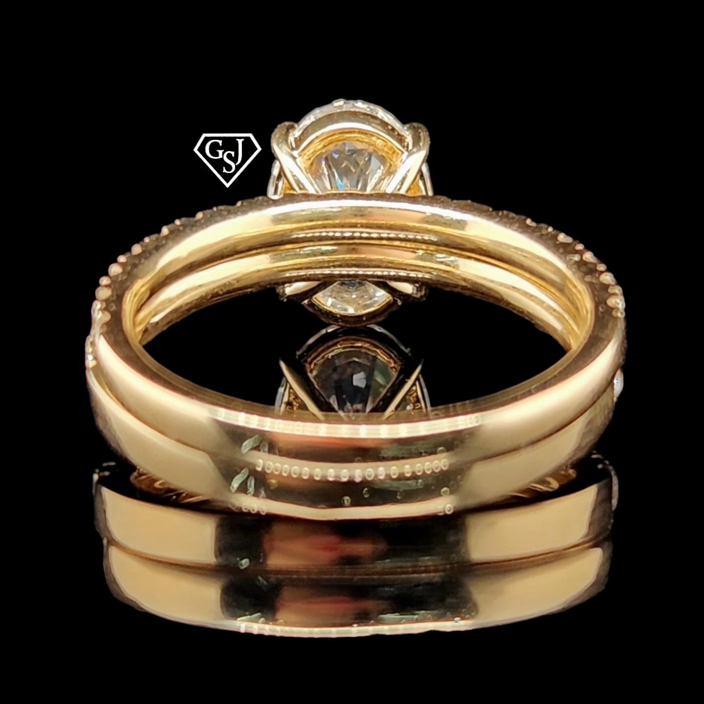 This 14K gold wedding set features a GORGEOUS 1.91CT center diamond, and holds a total created diamond weight of 2.71CTs. Pop into Gold Star Jewellers and check it out today!💖