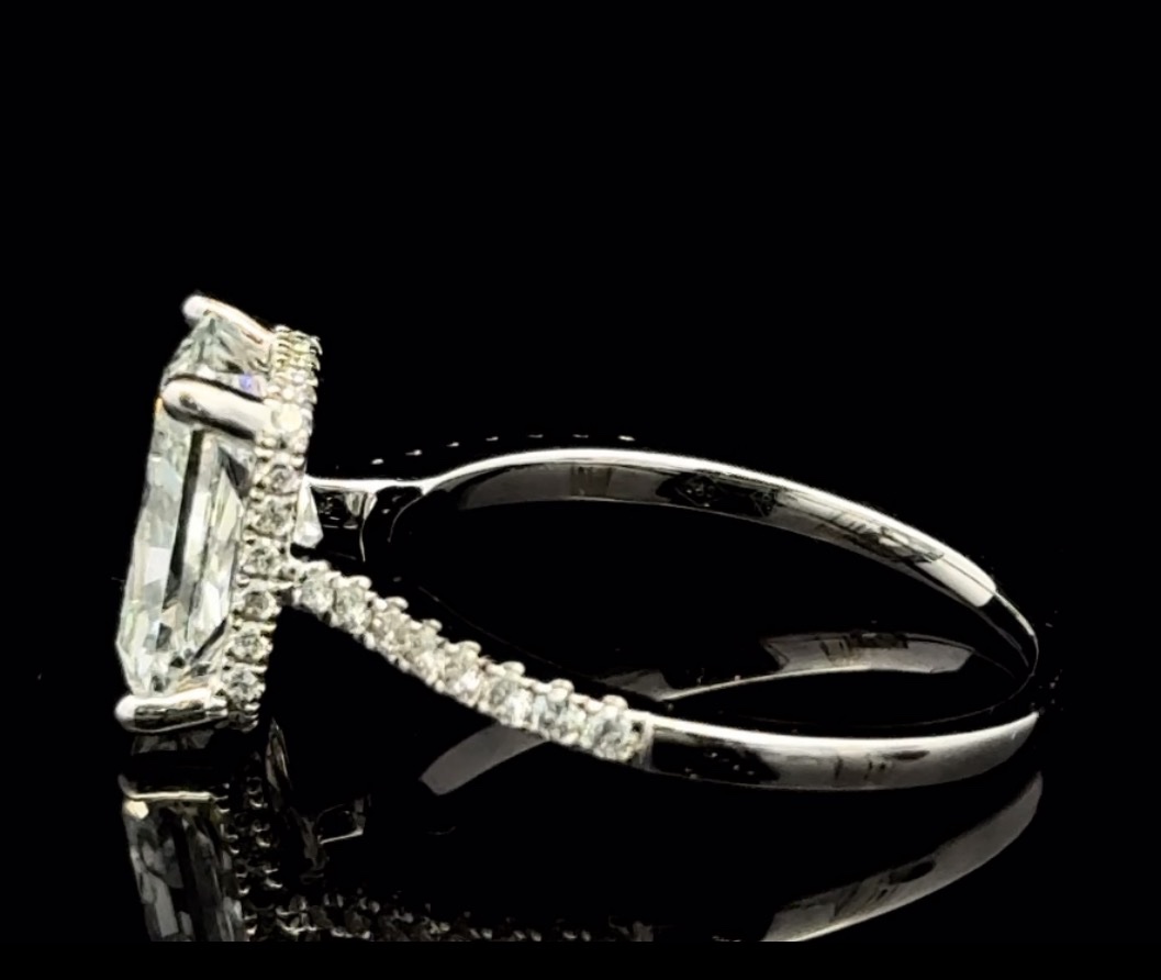 Check out this 14kt white gold diamond Engagment ring. This ring features a 3 carat centre stone set with a hidden halo.