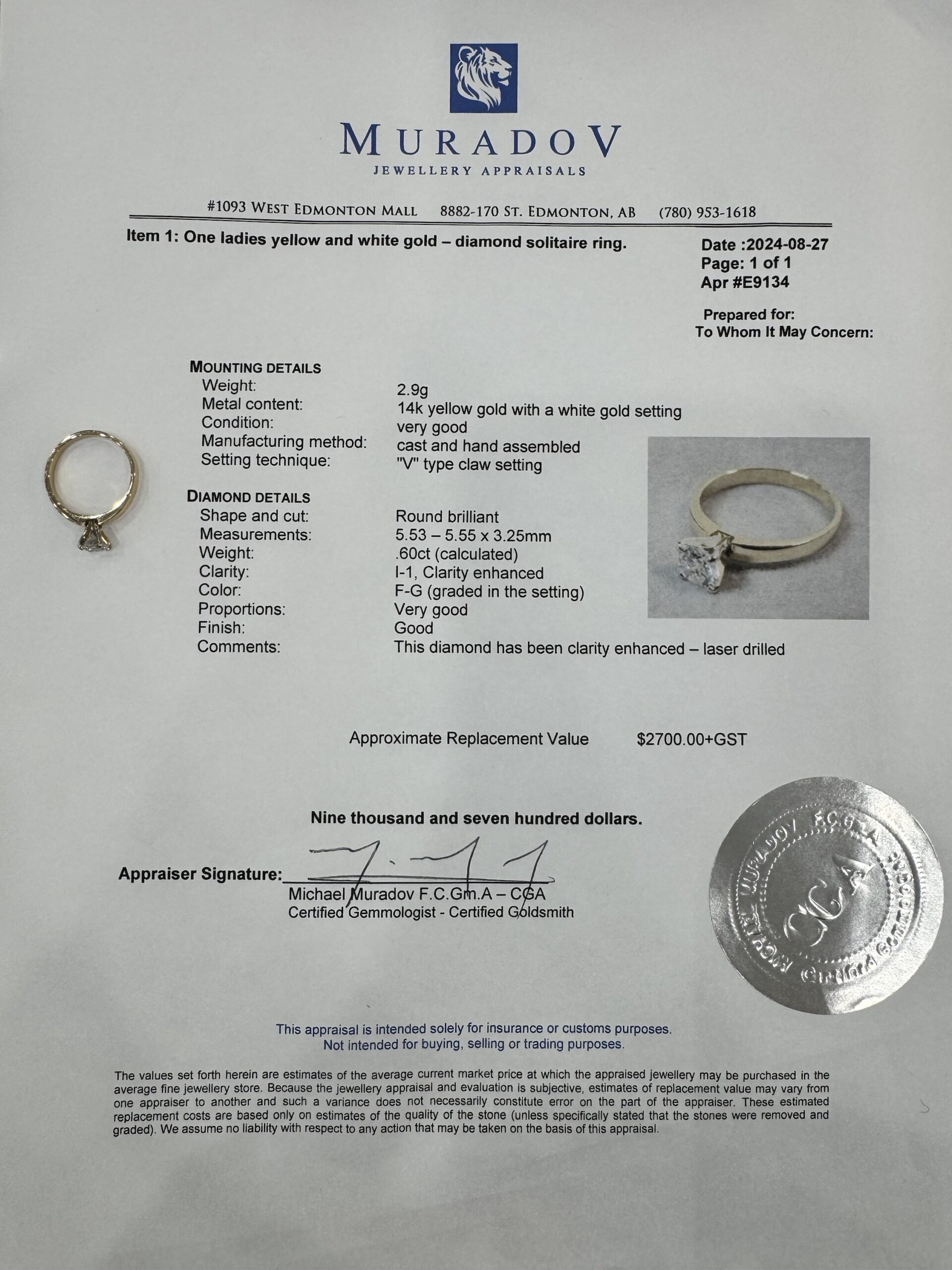 Celebrate the holidays right with the perfect Christmas gift for them! This ring features a Brilliant 0.6CT Round Diamond that sparkles to perfection, set seamlessly in White Gold. Weighing a total of 2.9g this ring is comfortable and classy. Although it’s rather simple, the glistening of the stone is definitely a showstopping sight making this the perfect statement piece for any event.
