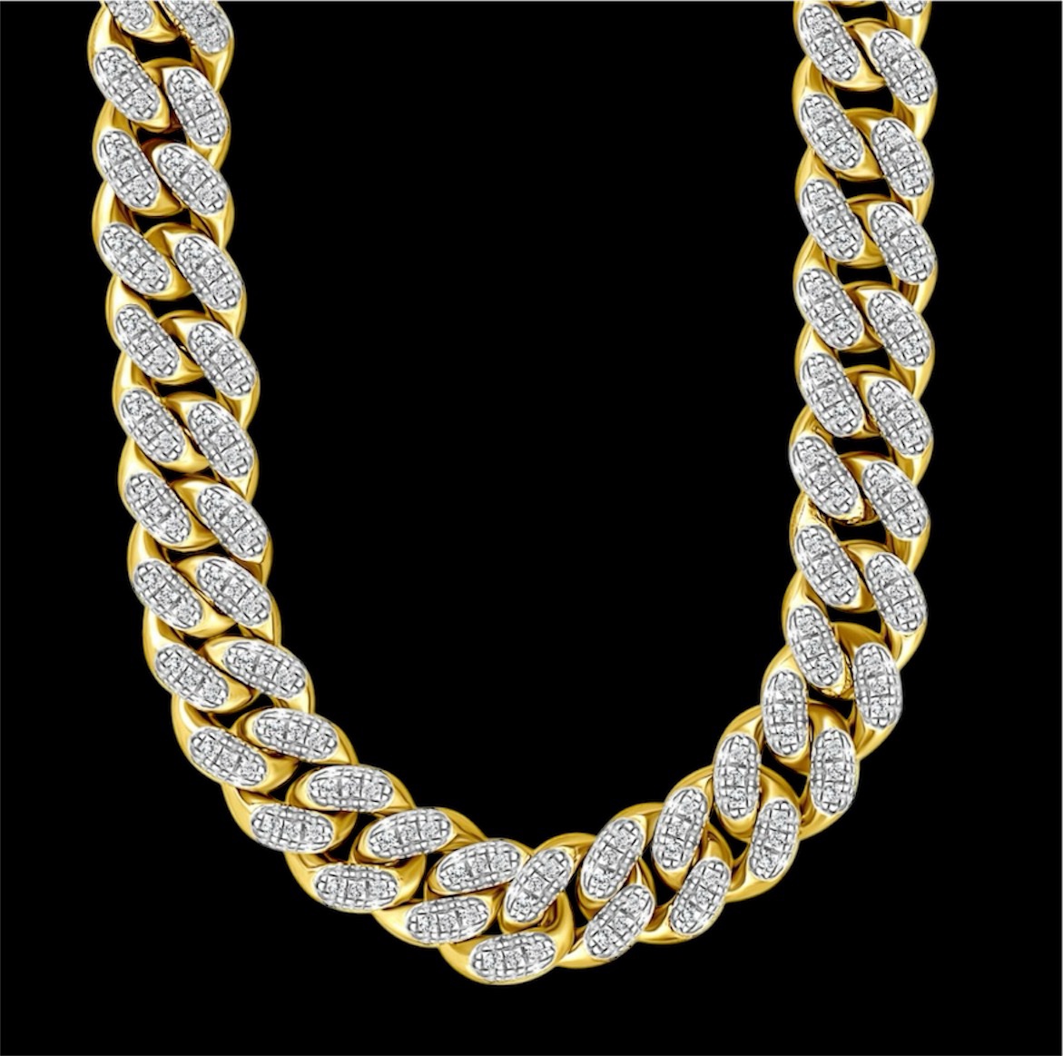 Elevate your style with our classy Gold Chain Necklace. Made with genuine 10K Yellow Gold polished to perfection, this chain has an elegant shine making it a gorgeous statement piece. Round 2.50CT Diamonds decorated around the chain makes it a versatile piece, perfect for stacking or simply wearing alone. Can be worn for formal or casual occasions.