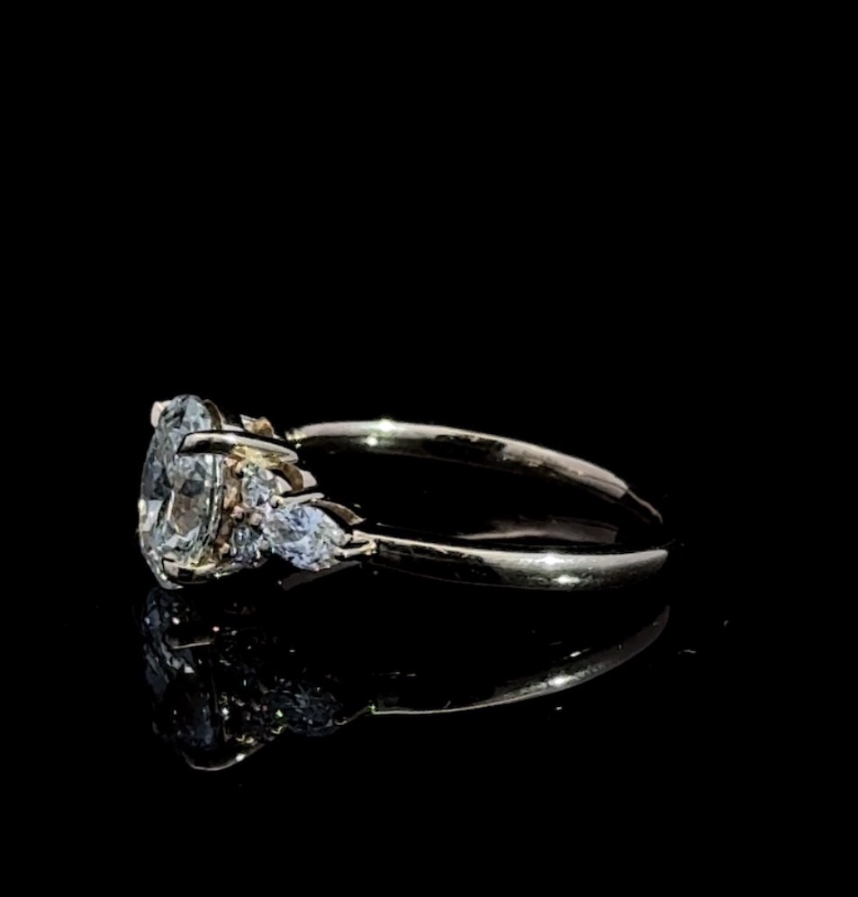 Timeless elegance meets modern brilliance in this exquisite 14K yellow gold oval diamond engagement ring. At its center sits a stunning 1.09CT oval-cut diamond, beautifully faceted to maximize light and sparkle. The center stone is gracefully accented by a cluster of marquise and round diamonds on either side, creating a soft, romantic silhouette with added dimension and brilliance.