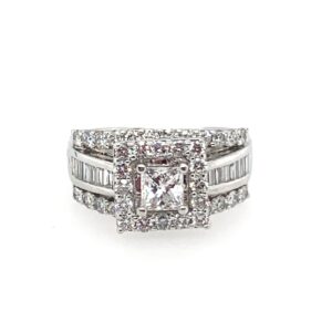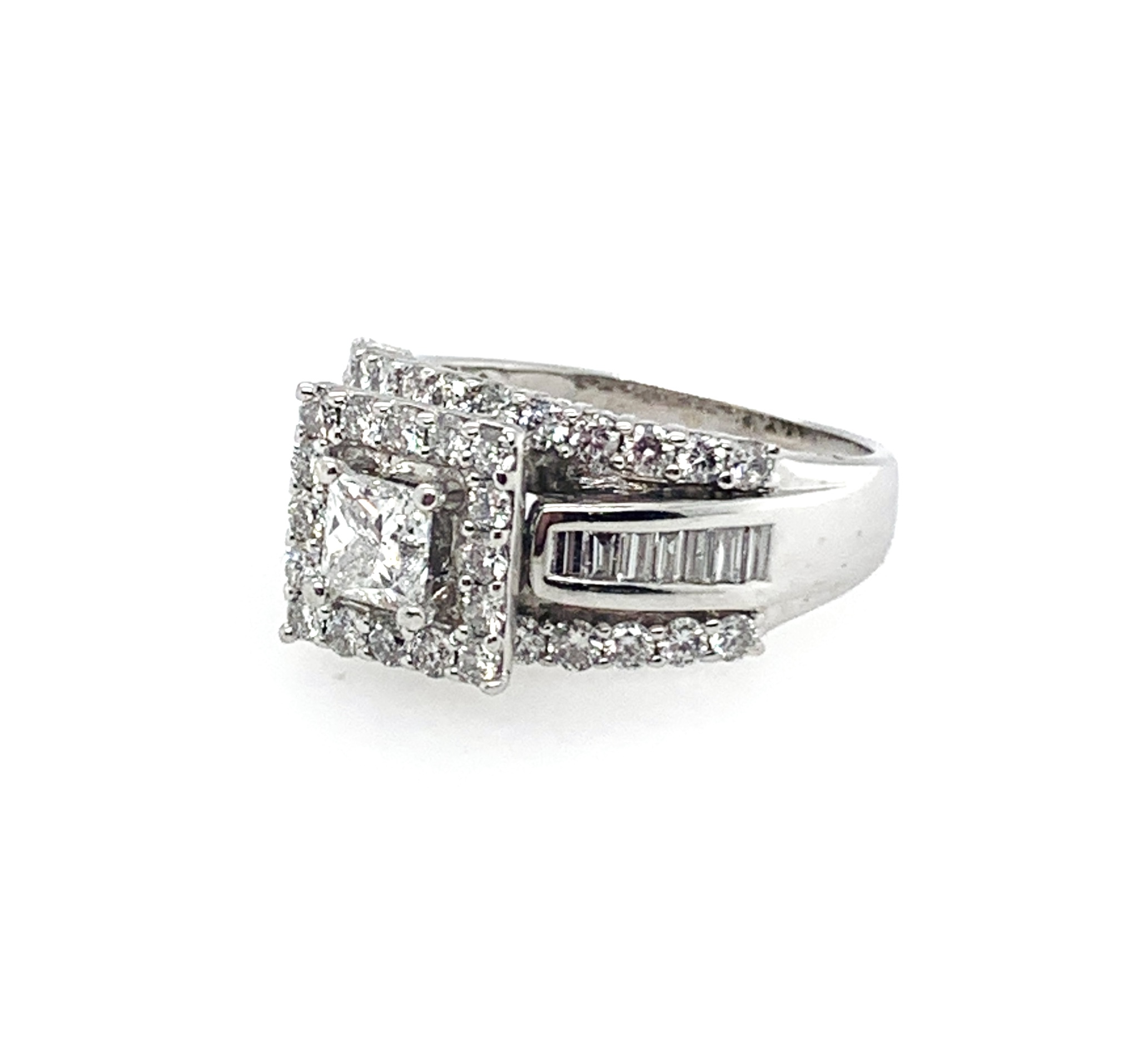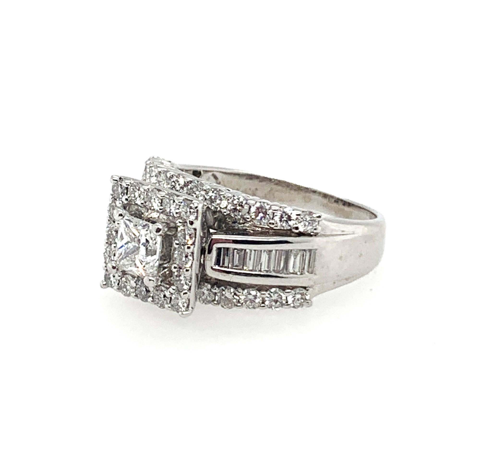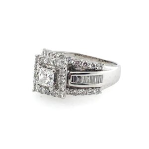 Look styling in this one of a kind princess cut diamond engagement ring.