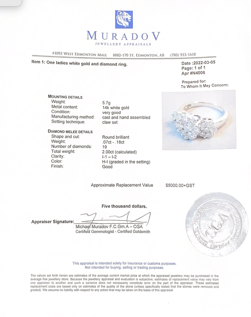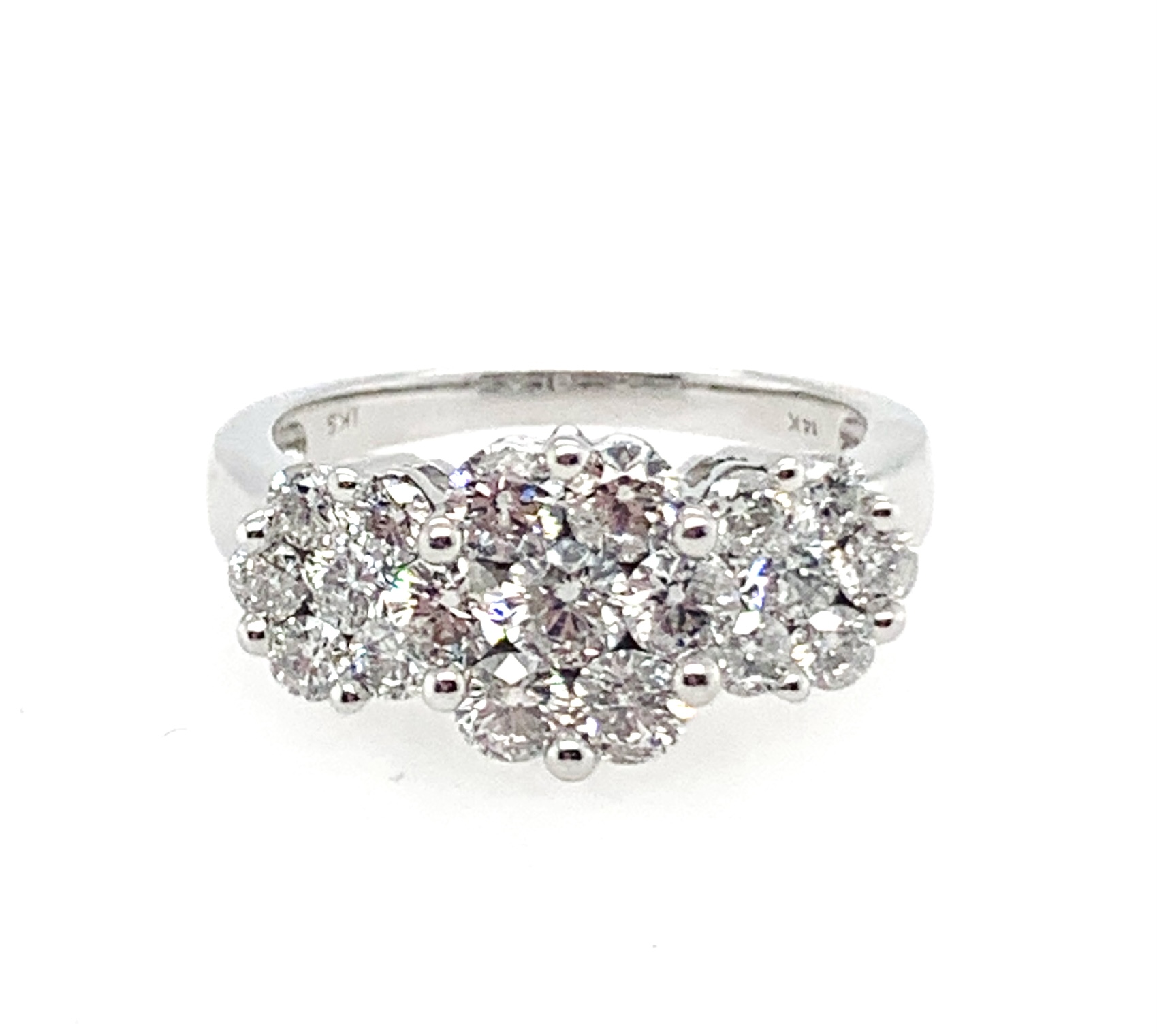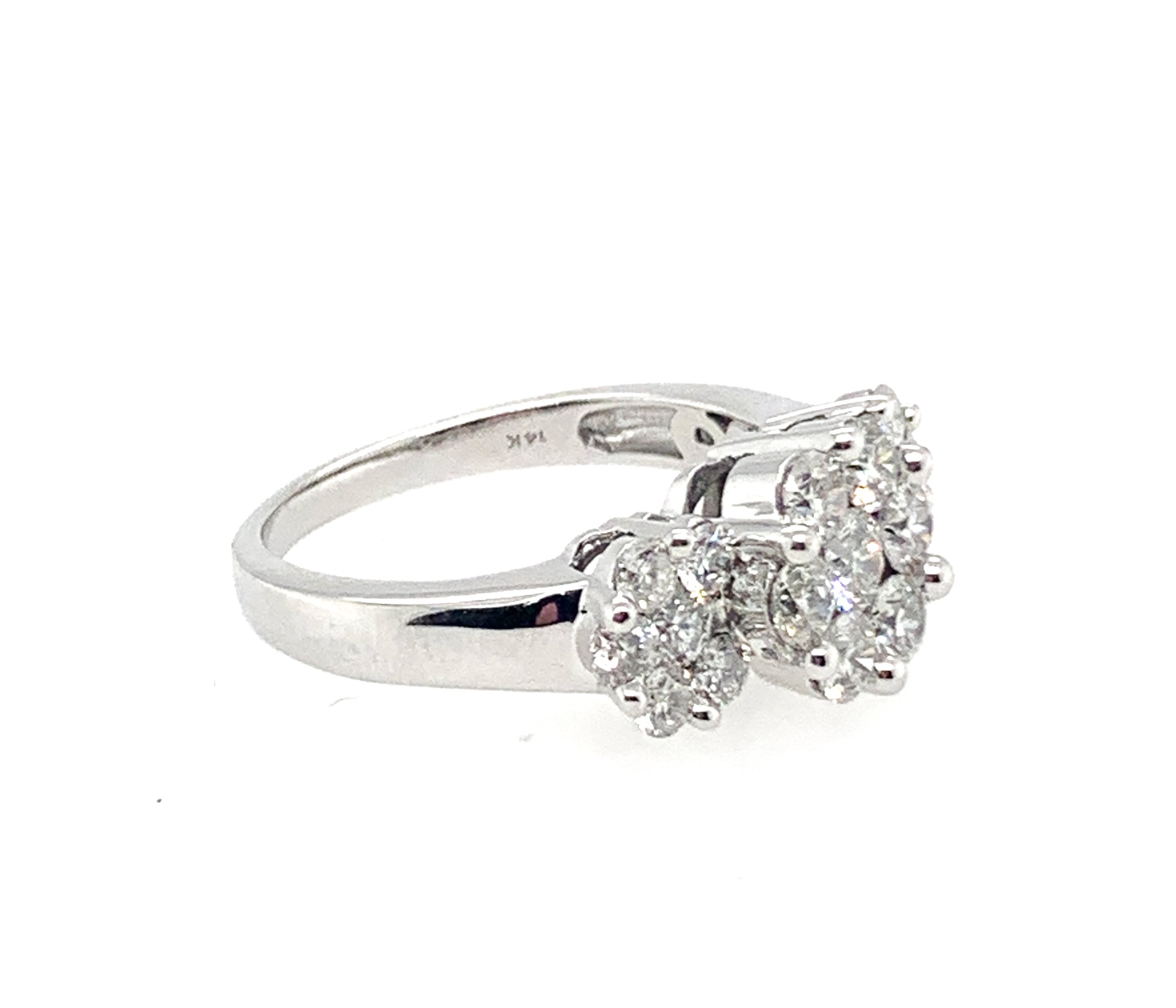 HomePre Owned Jewellery Estate JewelleryPre-Owned Triple Diamond Flower Baguette Ring 14K White Gold
