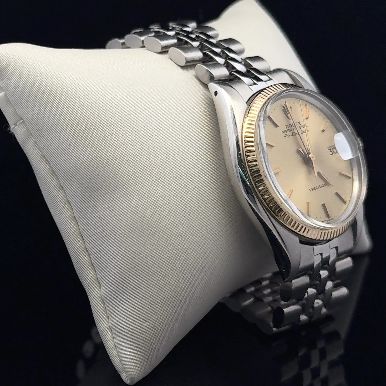A timeless Men’s Rolex Wristwatch featuring a refined gold dial, elegantly paired with a silver bracelet design. This sophisticated timepiece blends luxury and durability, offering precision movement, luminous hands, and a classic bracelet for a distinguished look suited for any occasion.